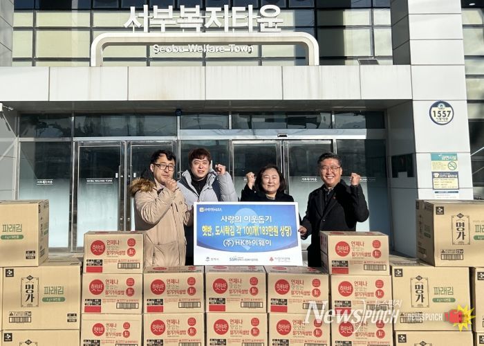 뉴스펀치 박상훈 기자 | ㈜HK하이웨이는 지난 30일 평택서부노인복지관에서 평택행복나눔본부에게 183만 원 상당의 햇반과 도시락김을 전달했다.