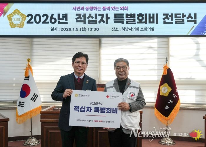 뉴스펀치 박상훈 기자 | 하남시의회는 5일 오후 시의회에서 ‘2026년 대한적십자사 특별회비 전달식’을 진행했다.