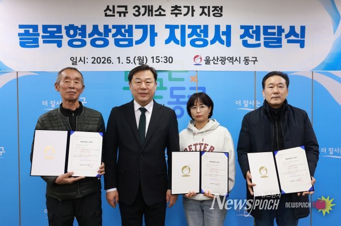 뉴스펀치 김윤걸 기자 | 울산 동구는 1월 5일 오후 3시 30분 구청장실에서 골목상권 활성화를 위한 골목형 상점가 지정서 전달식 및 상인회장 간담회를 개최하고, 동구지역 골목형 상점가 3개소를 추가 지정했다.