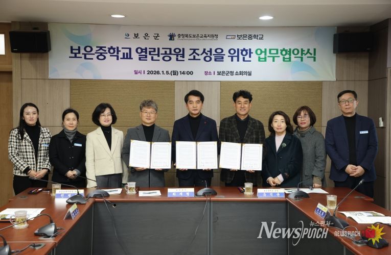최재형 보은군수는 “이번 협약은 학교와 지역이 함께 공간을 만들어가는 의미 있는 출발점”이라며 “보은중학교 열린공원이 학생과 지역 주민 모두가 편하게 이용하는 생활 밀착형 녹지 공간으로 자리 잡을 수 있도록 적극 지원하겠다”고 말했다.