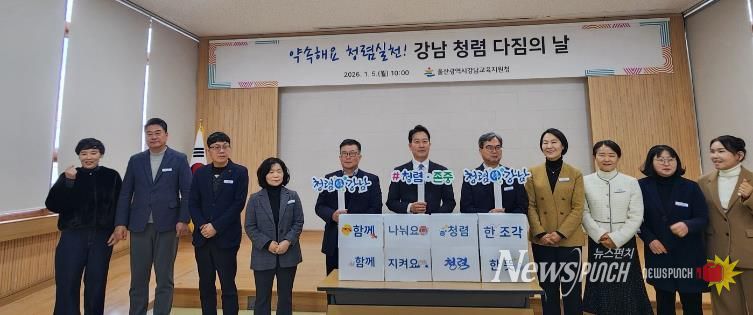 뉴스펀치 김윤걸 기자 | 울산 강북·강남교육지원청은 지난 5일 새해를 맞아 전 직원이 참석한 가운데 청렴 실천 서약식을 열고, 공정하고 투명한 공직문화 조성에 대한 의지를 다졌다.