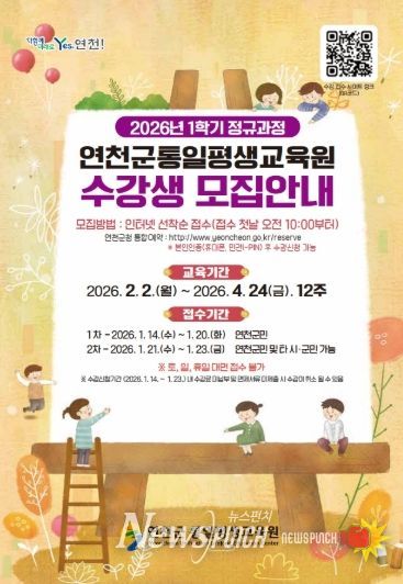 뉴스펀치 박상훈 기자 | 연천군은 군민의 평생학습 참여 기회를 확대하기 위해 2026년 1학기 평생교육 정규과정 수강생을 모집한다고 밝혔다.