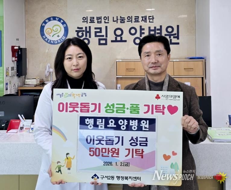 뉴스펀치 김윤걸 기자 | 의료법인 나눔의료재단 행림요양병원은 이웃돕기 성금 50만원을 구서2동 행정복지센터에 기탁했다.