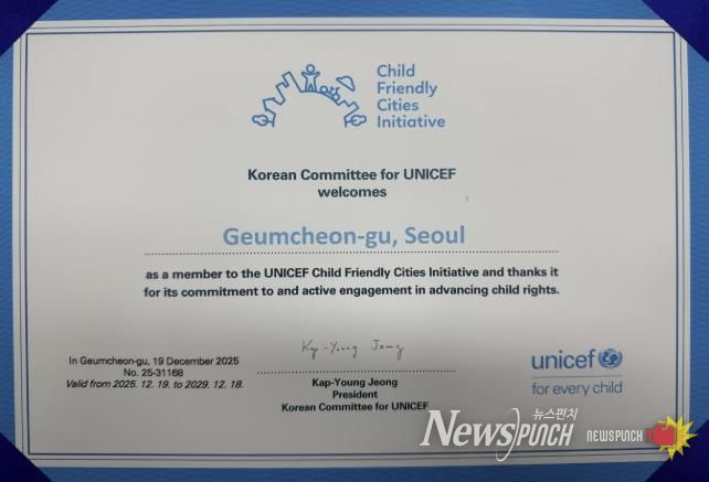 이어 “이번 재인증 획득을 계기로 아동들의 목소리를 경청하고 건강한 성장을 체계적으로 지원하겠다”라며 “금천구를 어른과 아이 모두 행복한 도시로 발전시켜 나가겠다”라고 밝혔다.