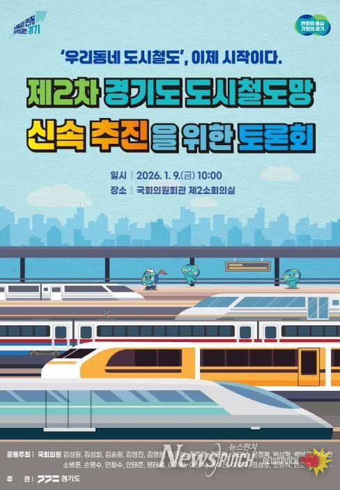 뉴스펀치 박상훈 기자 | 경기도가 ‘제2차 경기도 도시철도망 구축계획(′26~′35)’에 반영된 사업들의 실질적인 추진 방안 논의를 위해 9일 국회의원회관 제2소회의실에서 국회토론회를 연다.