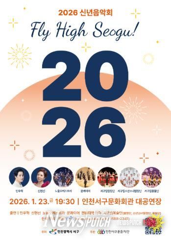 뉴스펀치 정홍균 기자 | 인천서구문화재단은 1월 23일 오후 7시 30분, 인천서구문화회관 대공연장에서 2026년 신년음악회 ‘Fly High Seogu!’를 개최한다.