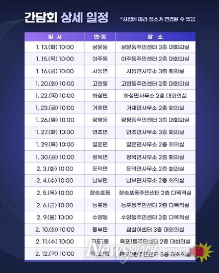 이번 면‧동 순방에서는 2026년 주요업무계획을 설명하고, 주민들과 함께 지역 현안에 대한 의견을 나눌 예정이다.