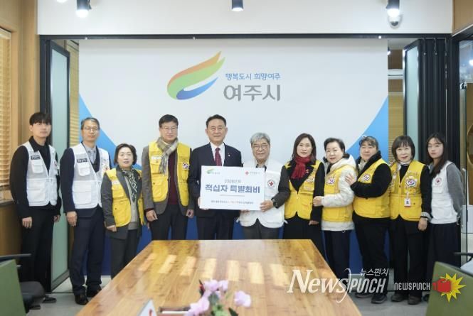 뉴스펀치 박상훈 기자 | 여주시는 1월 6일 시청 시장실에서 이재정 대한적십자사 경기도지사 회장과 대한적십자사봉사회 여주시지구협의회 회장 등이 참석한 가운데 2026년 적십자 특별회비를 전달했다.