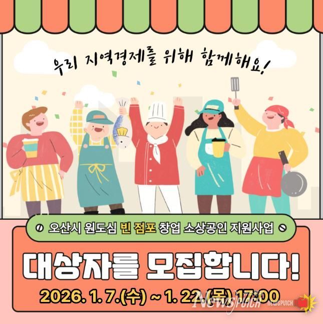 민생경제과 관계자는 “오산역 인근 원도심 상권에서 창업을 계획하고 있는 소상공인들의 많은 관심과 적극적인 참여를 바란다”고 전했다.