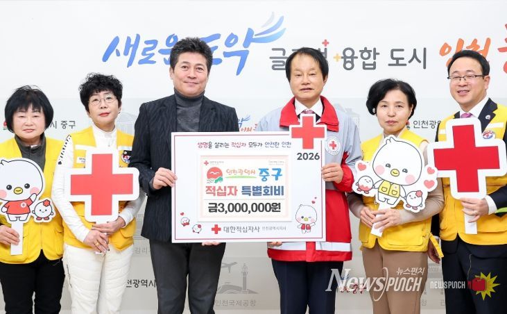 뉴스펀치 정홍균 기자 | 인천시 중구는 병오년 새해를 맞이해 대한적십자사 인천지사에 ‘2026년도 적십자 특별회비’ 300만 원을 전달하며 나눔과 상생의 가치를 실천했다고 7일 밝혔다.