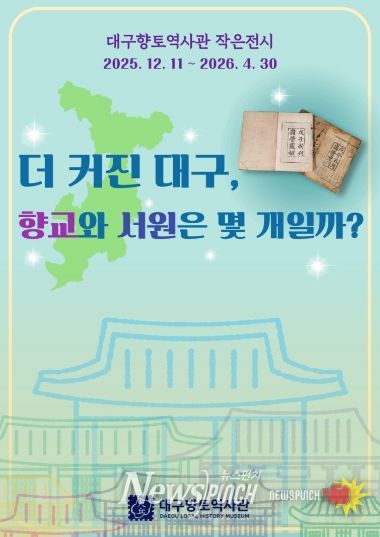 한편, 대구향토역사관 상설전시실에서는 새롭게 ‘더 커진 대구, 향교와 서원은 몇 개일까?’ 전시와 ‘대구 역사의 중심, 대구달성(大邱達城) 몇 장면(조선~현대까지)’ 작은전시가 진행되고 있어 새로운 볼거리를 제공하고 있다.