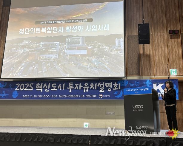 재단은 지난해 11월 울산전시컨벤션센터에서 열린 ‘2025 혁신도시 투자유치설명회’에서 혁신도시 투자유치 및 기업지원 우수사례 기관으로 선정됐으며 박은희 부장이 ‘첨단의료복합단지 활성화 사업사례’를 주제로 발표했다.