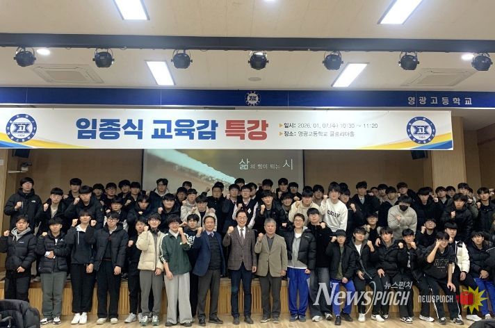 뉴스펀치 박세훈 기자 | 임종식 경상북도 교육감이 2026년 1월 7일, 영주 영광고등학교를 방문해 3학년 학생들을 대상으로 특별 강연을 펼쳤다. 이번 특강은 ‘행복’을 주제로, 3학년 전 학급 학생들이 참석한 가운데 따뜻하고 진솔한 분위기 속에서 이뤄졌다. 임종식 교육감은 특강을 통해 행복이 단순한 감정이 아닌 ‘삶의 태도’이며, 누구나 일상 속에서 발견하고 만들어갈 수 있다는 메시지를 전했다.