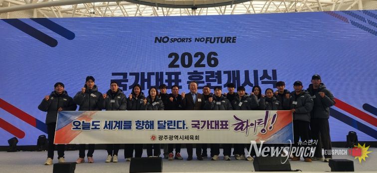 뉴스펀치 최영남 기자 | 광주광역시체육회(회장 전갑수)는 7일 오전 10시 충북 진천국가대표선수촌 벨로드롬에서 열린 ‘2026년 국가대표선수단 훈련개시식’에 전갑수 체육회장 등 임직원이 참석해 국가대표선수들의 선전을 기원하고 광주 소속 선수들을 격려했다고 밝혔다.