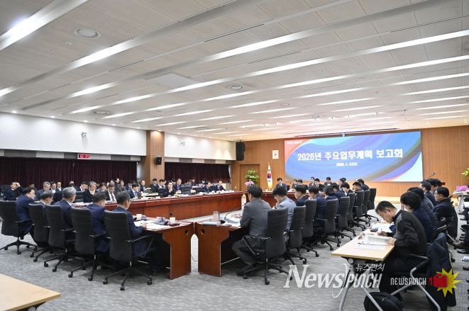도는 7일 도청 대회의실에서 김태흠 지사와 박정주·전형식 행정·정무부지사, 실·국·원·본부장, 공공기관장, 중앙부처 및 관계 기관 협력관, 정책자문위원, 정책특별보좌관, 도민평가단 등 120여 명이 참석한 가운데, 2026년 주요 업무 계획 보고회를 개최했다.