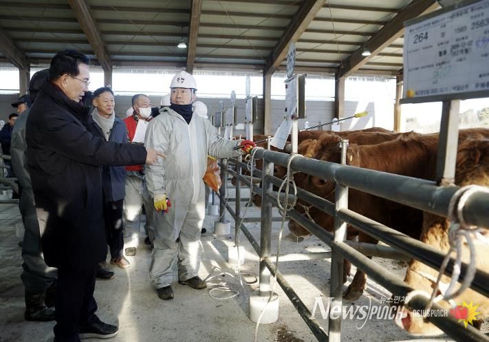 뉴스펀치 이현승 기자 | 이완섭 서산시장이 8일 음암면 상홍리에 있는 서산태안축협 가축경매시장을 방문했다.