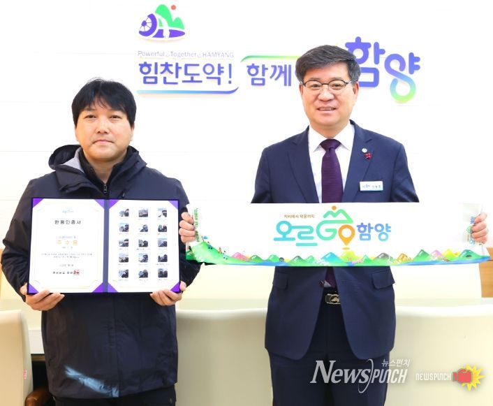 뉴스펀치 박세훈 기자 | 함양군이 운영하는 산악완등 인증사업 ‘오르GO 함양’에서 2026년 새해를 맞은 지 8일 만에 15좌 첫 완등자가 탄생했다.
