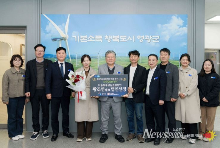 뉴스펀치 김용희 기자 | 영광군은 사단법인 대한민국명인회가 주최하고 사단법인 세계명인회에서 주관하는‘제35차 대한민국 대한명인 선정’으로 다송유통영농조합법인 황조연 대표가 선정됐다고 밝혔다.