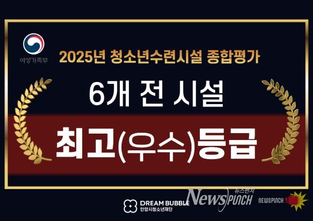뉴스펀치 박상훈 기자 | 안양시청소년재단은 성평등가족부와 한국청소년정책연구원이 실시한 ‘2025년도 청소년수련시설 종합평가’에서 소속 6개 청소년수련시설이 전국 최상위 성과를 거두며 운영 역량을 공식적으로 인정받았다.