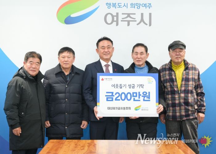 뉴스펀치 박상훈 기자 | 지난 7일 대신파크골프동호회 회장 윤희정, 전 회장 최병규, 박성배·이현권 회원 등은 여주시를 방문하여 관내 저소득층을 위한 이웃돕기 성금으로 200만원을 기탁했다