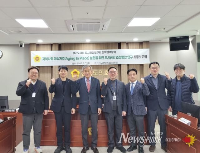뉴스펀치 박상훈 기자 | 경기도의회 도시환경연구회(회장 김시용, 도시환경위원장)는 7일 오후 경기도의회 도시환경위원회 회의실에서 ‘지역사회 계속거주(Aging In Place) 실현을 위한 도시공간 조성방안 연구’에 관한 정책연구용역 최종보고회를 개최했다.
