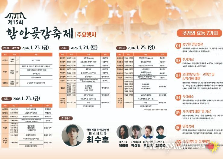 뉴스펀치 박세훈 기자 | 함안군은 함안곶감축제위원회(위원장 임영오, 사무국장 이진혁)가 주관하는 제15회 함안곶감축제가 오는 23일부터 25일까지 함안체육관 일원에서 개최된다고 지난 9일 밝혔다.