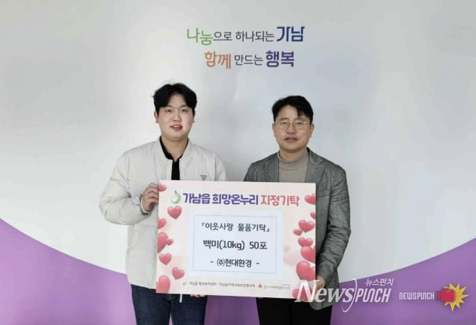 뉴스펀치 박상훈 기자 | 현대환경㈜은 지난 8일, 가남읍 행정복지센터를 방문해 관내 취약계층을 위한 백미(10kg) 50포를 기탁했다.