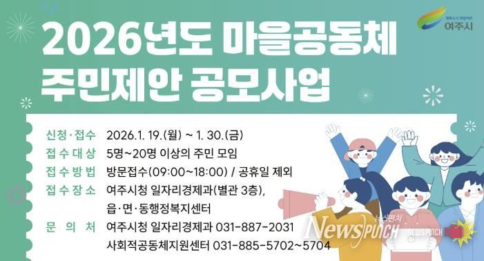 뉴스펀치 박상훈 기자 | 여주시가 2026년 마을공동체 주민제안 공모사업 관련하여 사업설명회를 개최한다.