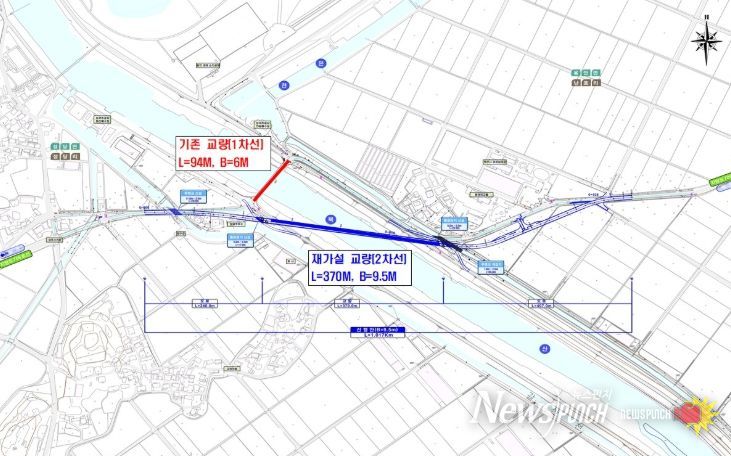 하지만 교량 높이가 낮아 집중호우 시 월류 위험이 있었고, 폭이 좁아 다리 위에서는 수시로 병목 현상이 발생했다.