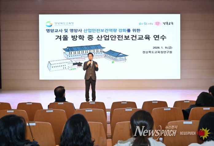 뉴스펀치 박세훈 기자 | 경북교육청은 9일 안동시에 있는 경상북도교육청연구원에서 도내 모든 공․사립 학교에 근무하는 영양교사와 영양사 250명을 대상으로 ‘겨울 방학 중 영양교사 및 영양사 산업안전보건교육 연수’를 개최했다고 밝혔다.