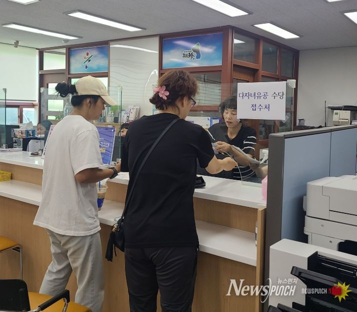 지급 절차는 해당 연령의 자녀가 있는 다자녀 부모 중 1명이 읍·면사무소를 방문해 신청서를 작성하고, 수당 전용 카드를 수령하면 다자녀 및 지원 요건 검증 후 다음 달 7일 이내 수당이 지급된다.