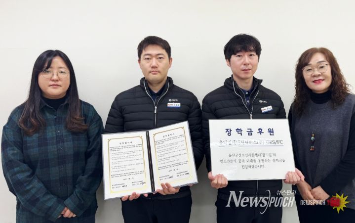 뉴스펀치 박세훈 기자 | 울진군 청소년지원센터‘꿈드림’은 지난 1월 8일‘옵티멀에너지(주) 한울사업소 풋살 동호회(회장 배광선)’와 업무협약(MOU)을 체결하고 장학금 전달식을 가졌다.