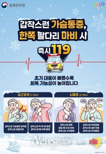 울진군 관계자는“심근경색증과 뇌졸중의 조기 증상을 인지하고, 정기적인 건강관리와 예방수칙을 실천하는 것이 무엇보다 중요하다”며 “군민 모두가 안전하고 건강한 겨울을 보낼 수 있도록 지속적인 홍보와 예방 활동을 이어가겠다”라고 말했다.