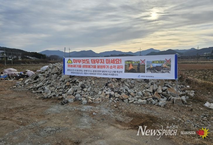 뉴스펀치 김용희 기자 | 고흥군은 최근 가정과 농경지에서 생활폐기물 및 영농부산물 불법소각 행위가 빈번하게 발생함에 따라, 무관용 원칙을 적용한 강력 단속에 나선다고 9일 밝혔다.
