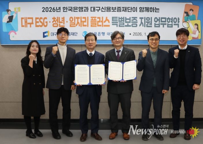 뉴스펀치 조평훈 기자 | 대구신용보증재단이 지역경제 성장과 중소기업·소상공인의 경영 안정을 도모하기 위해 한국은행 대구경북본부와 ‘대구 ESG·청년·일자리 특별보증’을 시행한다고 밝혔다.