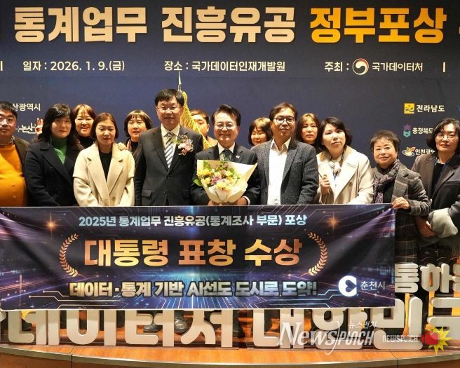 뉴스펀치 조평훈 기자 | 춘천시가 9일 2025년 통계업무 유공을 인정받아 강원특별자치도 18개 시군 중 최초로 대통령 표창을 수상했다.