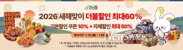 뉴스펀치 박세훈 기자 | 경상남도와 (재)경상남도투자경제진흥원이 운영하는 e경남몰(egnmall.kr)에서 12일부터 예산 소진 시까지 2026년 신년맞이 할인 기획전을 시작한다.