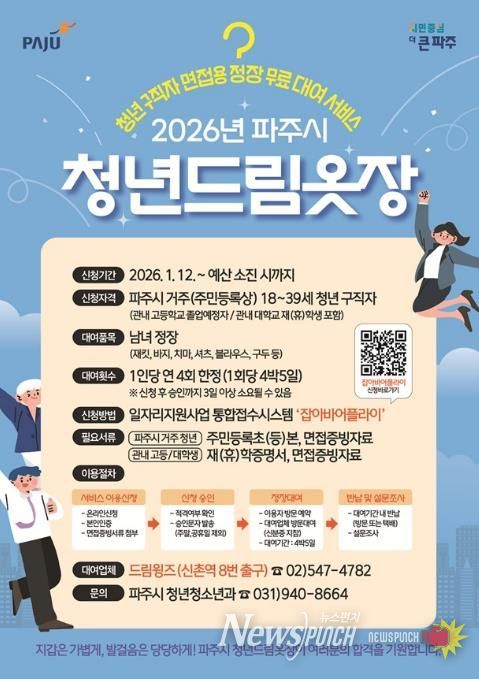 뉴스펀치 박상훈 기자 | 파주시는 관내 청년 구직자에게 면접용 정장을 무료로 대여해 주는 녪년 청년드림옷장’사업을 12일부터 재개한다고 밝혔다.