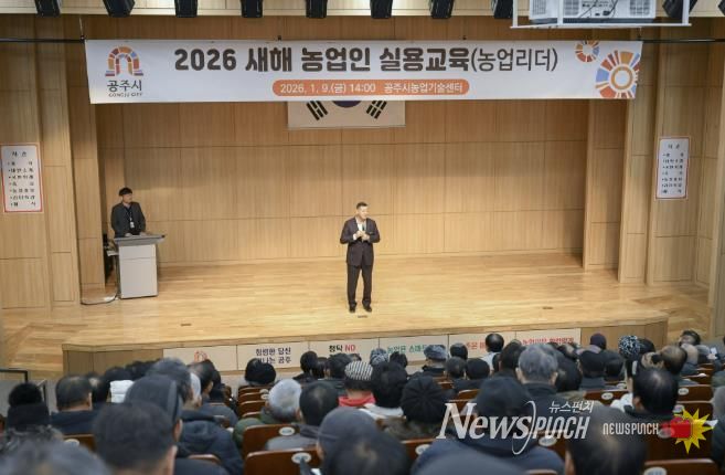 뉴스펀치 이현승 기자 | 공주시는 지난 9일 농업기술센터 대강당에서 이장과 농업인학습단체 임원 및 교육을 희망하는 농업인 등을 대상으로 2026년 새해 농업인 실용교육 ‘농업리더 특별과정’을 실시했다.