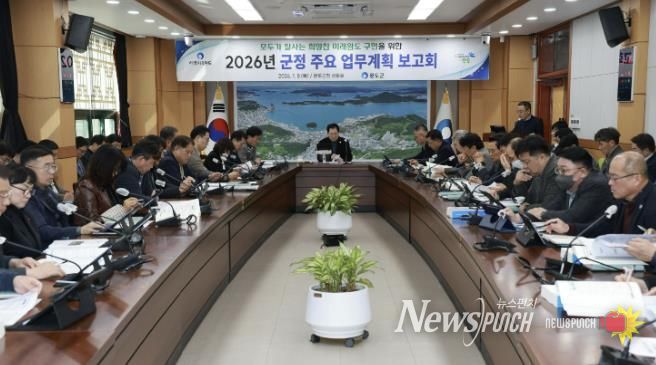 뉴스펀치 김용희 기자 | 완도군은 지난 8일 군청 상황실에서 '2026년도 군정 주요 업무 계획 보고회'를 개최하고 군정 운영 방향과 부서별 핵심 사업 추진 계획을 논의했다.