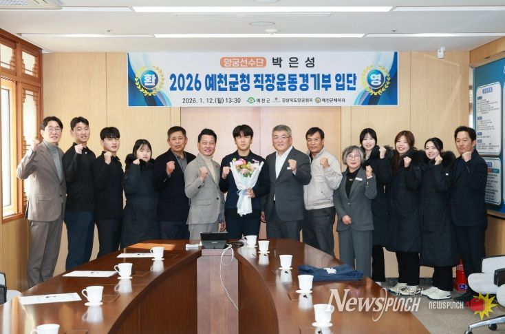 뉴스펀치 박세훈 기자 | 예천군은 2026년 예천군청 양궁선수단의 새로운 식구로 박은성 선수가 합류하며, 12일 예천군청 군수실에서 입단식을 개최했다고 밝혔다.