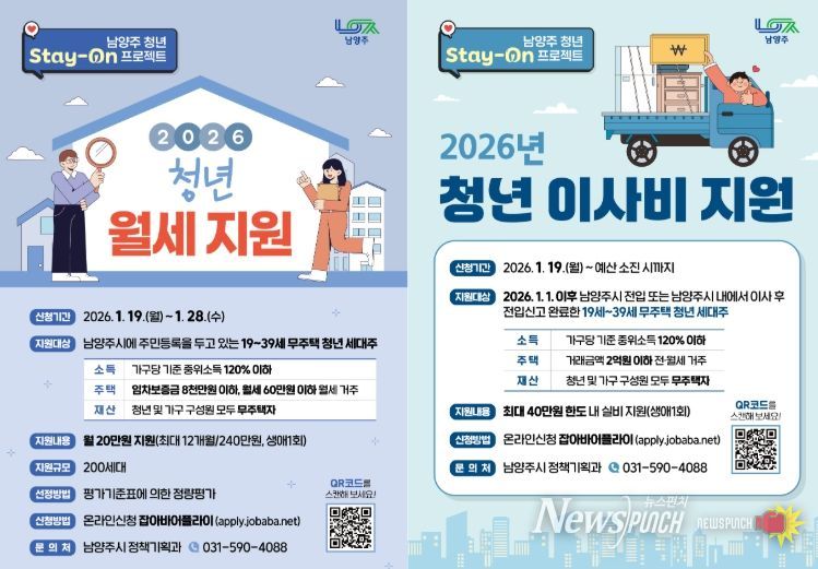 뉴스펀치 박상훈 기자 | 남양주시는 올해부터 청년을 대상으로 맞춤형 주거비를 지원하는 ‘남양주 청년 Stay-On 프로젝트’를 본격 시행한다고 12일 밝혔다.