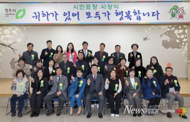 뉴스펀치 이현승 기자 | 청주시는 12일 서원구청에서 시민표창 시상식을 열고, 지역발전과 이웃사랑 실천에 기여한 시정발전 유공자 28명에게 표창을 수여했다.