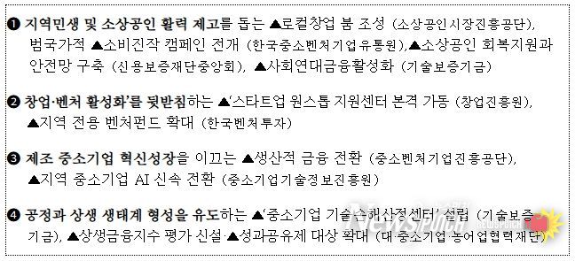 이 자리에서 중소벤처기업진흥공단, 소상공인시장진흥공단, 기술보증기금등 15개 기관으로부터 업무 보고를 받는 가운데, 중소기업중앙회, 벤처기업협회, 소상공인연합회, 코리아스타트업포럼 등 5개 민간 기업단체가 참여하여, 열띤 토론이 펼쳐졌다.