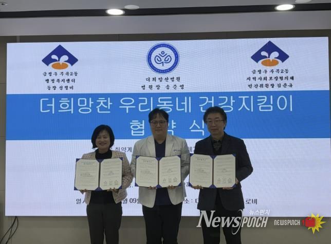 뉴스펀치 김윤걸 기자 | 부산 금정구 부곡2동과 부곡2동 지역사회보장협의체가 지난 9일 더희망찬병원(병원장 송준영)과 지역 내 저소득층 및 취약계층의 건강 증진을 위한 의료지원 업무협약을 체결했다.