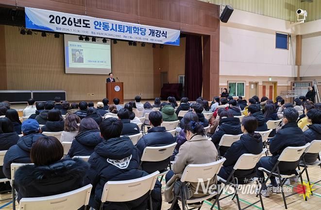 뉴스펀치 박세훈 기자 | (재)안동시장학회는 지역 우수 인재 양성을 위한 교육 지원사업의 일환으로 ‘안동시 퇴계학당 2026학년도 개강식’을 1월 10일(토) 예일메디텍고등학교 체육관에서 개최했다.