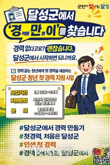 최재훈 달성군수는 “청년에게 가장 필요한 것은 기회이며, ‘경만이’ 사업은 그 출발선이 될 것”이라며 “달성군이 청년의 첫 경력을 함께 만들어가는 든든한 동반자가 되겠다”고 전했다.