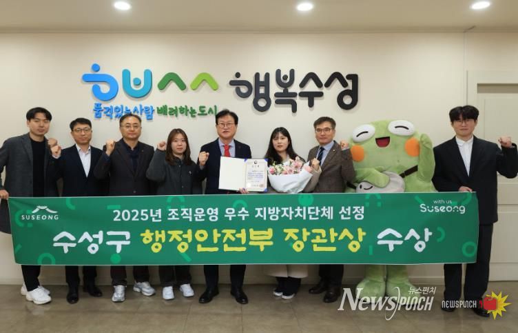 뉴스펀치 조평훈 기자 | 대구 수성구는 행정안전부가 주관한 ‘2025년 조직운영 우수 자치단체’ 평가에서 장관상(기관 표창)을 수상했다고 밝혔다.