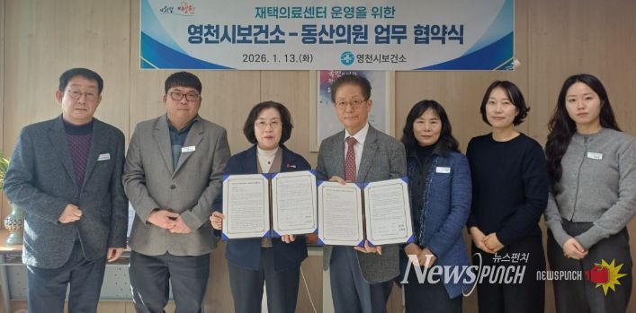 뉴스펀치 박세훈 기자 | 영천시는 13일 장기요양 수급자 등 거동이 불편한 환자들에게 체계적인 재택의료 서비스를 제공하기 위해, 민간의료기관인 동산의원과 ‘장기요양재택의료센터 시범사업’ 추진을 위한 업무협약(MOU)을 체결했다고 밝혔다.