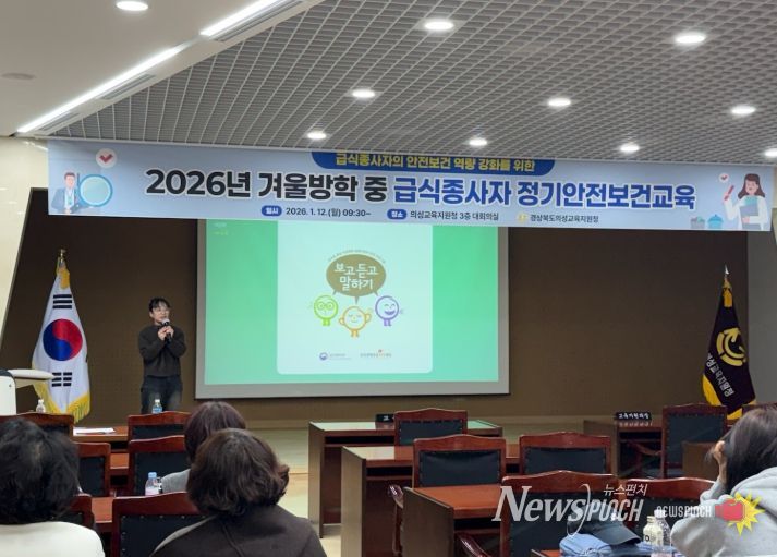 뉴스펀치 박세훈 기자 | 경상북도의성교육지원청은 1월 12일 관내 공·사립학교 조리교 및 급식종사자를 대상으로 겨울방학 중 급식종사자 정기안전보건교육을 실시했다.